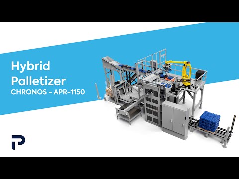 Our hybrid robot palletizer APR Series for bags combines the advantages of a conventional palletizer, featuring optimal layer forming (4 side enclosing) and layer top pressing with the flexibility, efficiency of a robotic palletizer solutions. The hybrid system works with a robotic arm and bag gripper, can handle various bag sizes and weights, as well as empty pallets and pallet sheets, adapting quickly. The system can work at medium speeds and improves overall production efficiency. Another benefit is space efficiency with reduced floor space required compared to a conventional palletizer. No additional working platform at high level is required, the operator works safely at floor level and always has the process in overview. The APR hybrid robotic system provides consistent stacking patterns, improving load stability and reducing transport damage. Other highlights to be mentioned: reduced labor costs, lower maintenance, scalability for future expansion, easy to integrate with other systems, energy efficiency and enhanced safety. Overall, hybrid robot palletizers for bags provide a versatile and efficient solution for modern manufacturing and distribution needs for state-of-the-art factories.