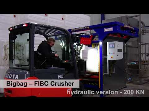 The content of big bags can become hard for many reasons. In that case, it is not possible to empty the big bag in a normal way, because the lumps are too big. By crushing the content, the large lumps are reduced to a workable size.