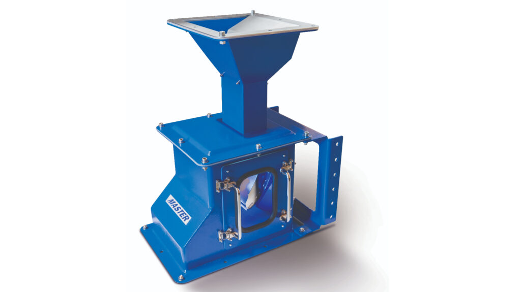 The Master BulkSlide is a solids flow meter that measures with accuracy from ± 0,5 percent. It can be used for most solid bulk products that are free-flowing and non-sticky. The BulkSlide calculates the product flow and total by measuring the force of the bulk product as it contacts the curved plate within the BulkSlide assembly.